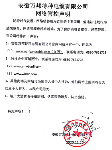 鄭重聲明:安徽萬邦特種電纜有限公司官方網站為:www_wanbangcable_com.bajitu.cn,除此之外無任何子網站或合作網站,其余均為假冒偽劣。電話:0550-7621728 13485756353 地 址:安徽省天長市滁州高新技術產業開發區經四路29號